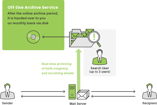 Active! vault SS does not affect the delivery route so it will never cause transmission failure, and provides worry-free email archival without lock-in.
