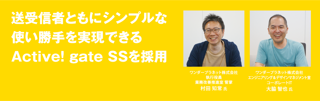 | 2025.11.18 | プレスリリース | ワンダープラネット、送受信ともにシンプルな使い勝手を実現できる Active! gate SSを採用 |